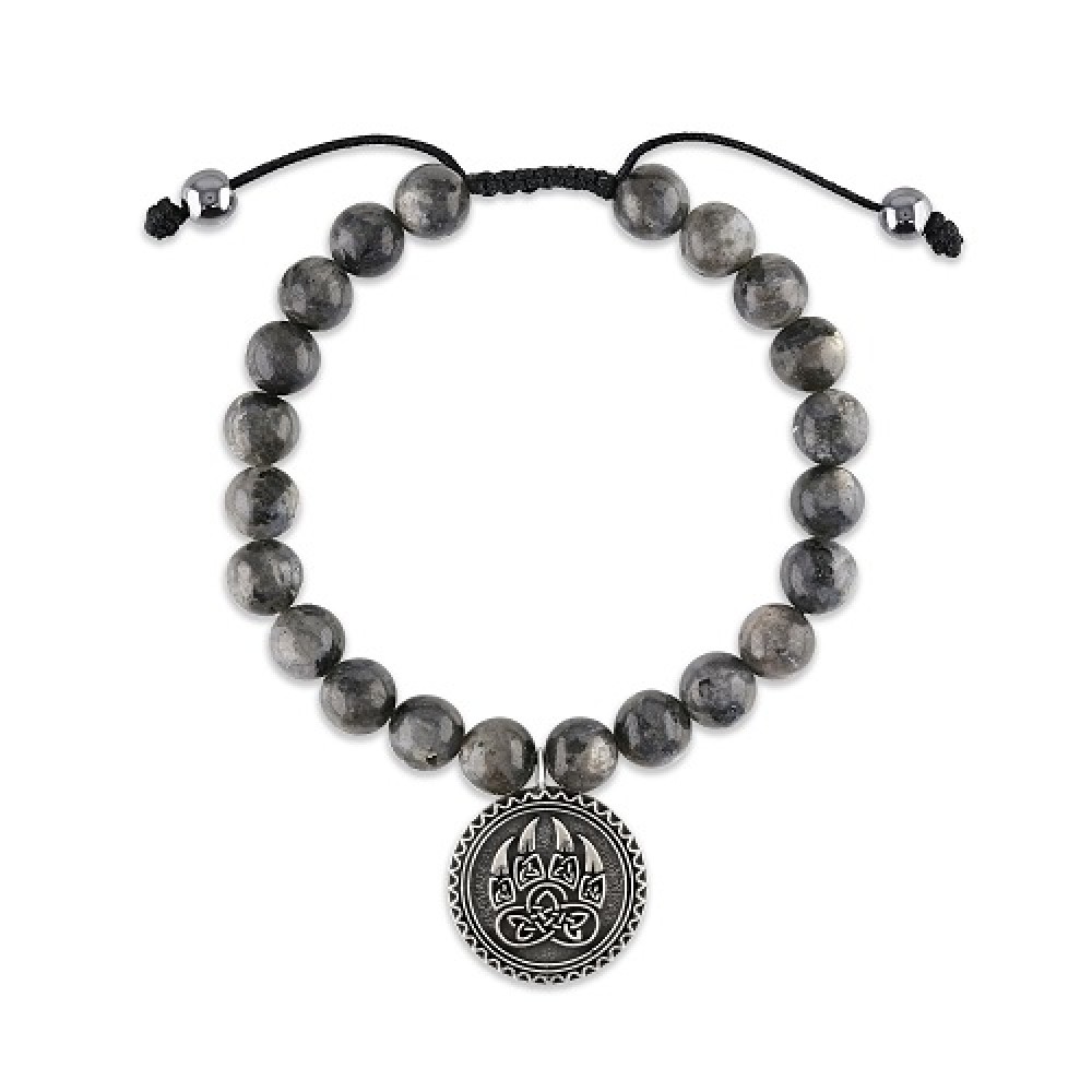 Handmade in natural gemstones with a 925 sterling silver bear paw print charm