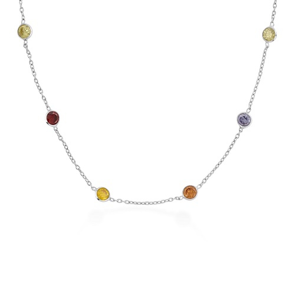This dazzling rainbow stone necklace in sterling silver features rows of glistening cubic zirconia's.