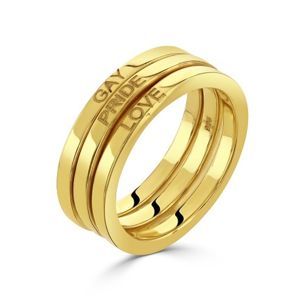 Stacking ring set of 3 with the text gay pride love