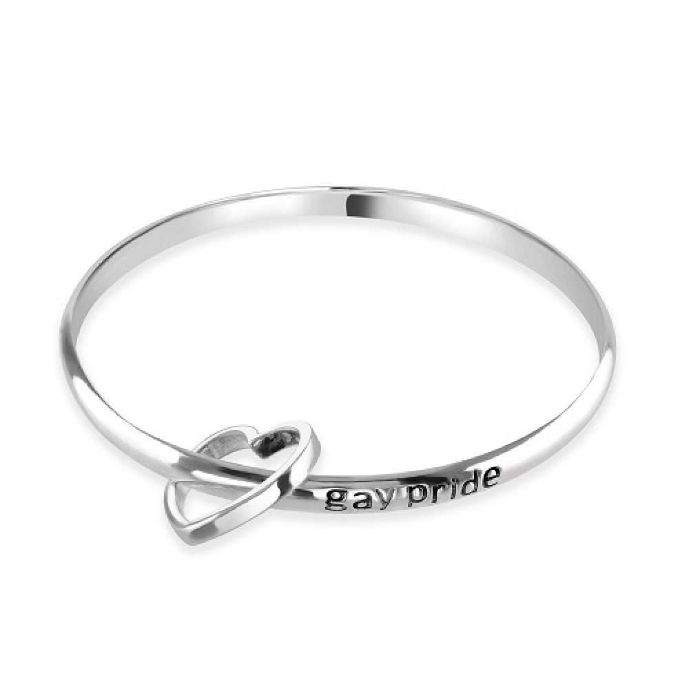 This bangle makes a striking statement, timeless and elegant with gay pride etched on the bangle